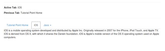 以下实例展示了使用选项卡插件的方法 .tab。 实例中第二个选项卡 iOS 被激活。