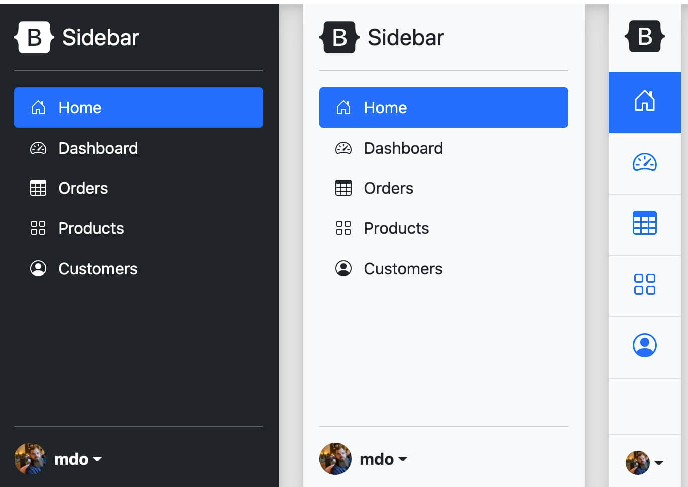 我们可以通过 JavaScript 来设置是否在 .offcanvas 类后面添加 .show 类,从而控制侧边栏的显示与隐藏: