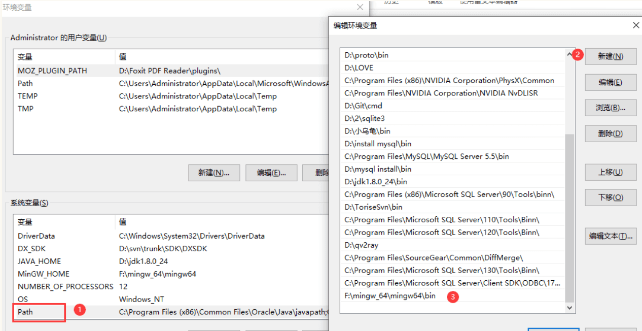 添加您安装的 MinGW 的 bin 子目录到您的 PATH 环境变量中,这样您就可以在命令行中通过简单的名称来指定这些工具。