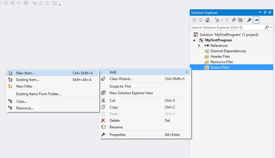 8、右击文件夹 Source File 并点击 Add --> New Item... :