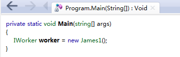 class Program { static void Main(string[] args) { IWorker james1 = new James1(); IWorker james2 = new James2(); james1.work("设计"); james2.work("编程"); //从这个例子我体会到了有接口的好处,可以想象如果又来了新的员工。 //如果不采用接口,而是每个员工都有一个单独的类,这样就会容易出错。 //如果有接口这种协议约束的话,那么只要实现了接口就肯定有接口里声明的方法,我们只需拿来调用。 } } public interface IWorker{ void work(string s); } class James1 : IWorker { public void work(string s) { Console.WriteLine("我的名字是James1,我的工作是" +s); } } class James2 : IWorker { public void work(string s) { Console.WriteLine("我的名字是James2,我的工作是"+s); } }3.一个可以实例化接口的特例