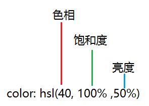 hsl() 函数使用色相、饱和度、亮度来定义颜色。