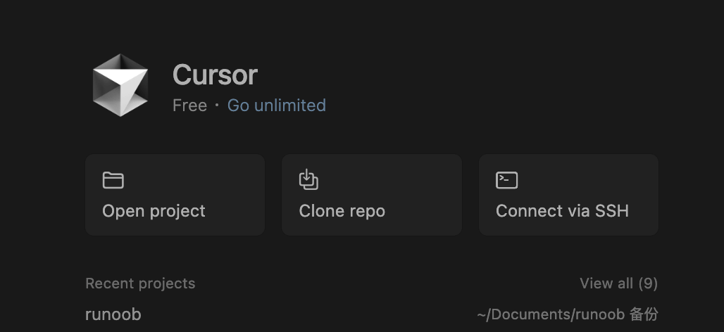 我们可以在 Cursor 中打开一个代码文件,也可以在在 Cursor 中打开一个目录(文件夹)是一个简单的过程,操作都很简单。