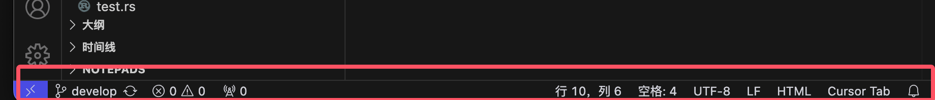状态栏位于窗口的底部,显示当前文件的状态信息,包括: