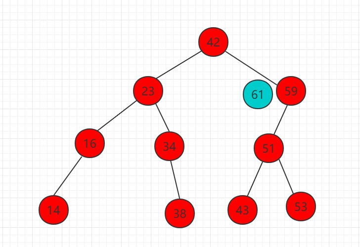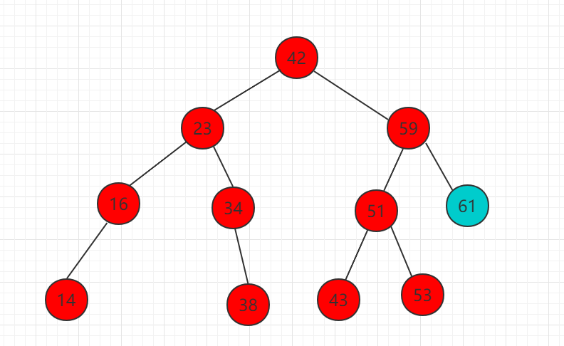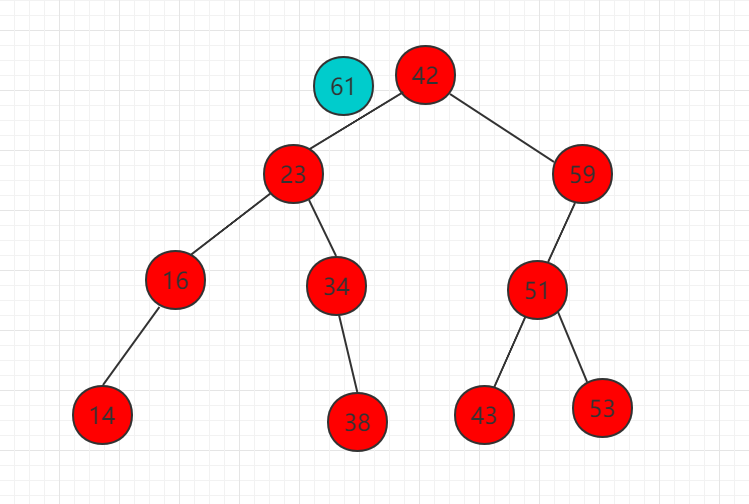 (1)需要插入的元素 61 比 42 大,比较 42 的右子树根节点。
