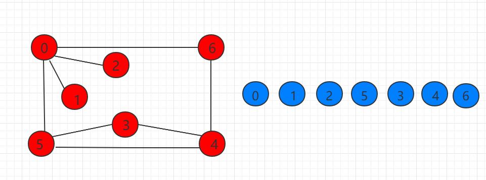 下图示例的图从 0 开始遍历顺序如右图所示: