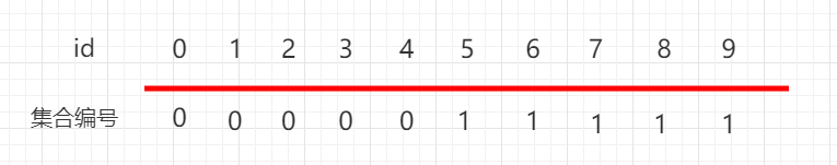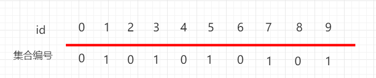再如上图 0、2、4、6、8 下面都是 0 这个集合,表示 0、2、4、6、8 这五个元素是相连接的,1、3、5、7、9 下面都是 1 这个集合,表示 0,1、3、5、7、9 这五个元素是相连的。