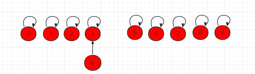 如果此时操作 union(4,3),将元素 4 指向元素 3: