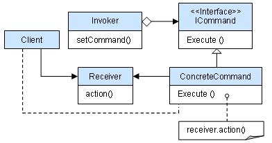 - 发送命令的对象,它包含了一个命令对象并能触发命令的执行。调用者并不直接处理请求,而是通过将请求传递给命令对象来实现。