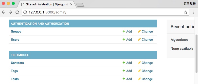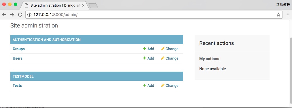 为了让 admin 界面管理某个数据模型,我们需要先注册该数据模型到 admin。比如,我们之前在 TestModel 中已经创建了模型 Test 。修改 TestModel/admin.py:
