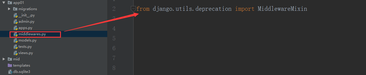在 app 目录下新建一个 py 文件,名字自定义,并在该 py 文件中导入 MiddlewareMixin: