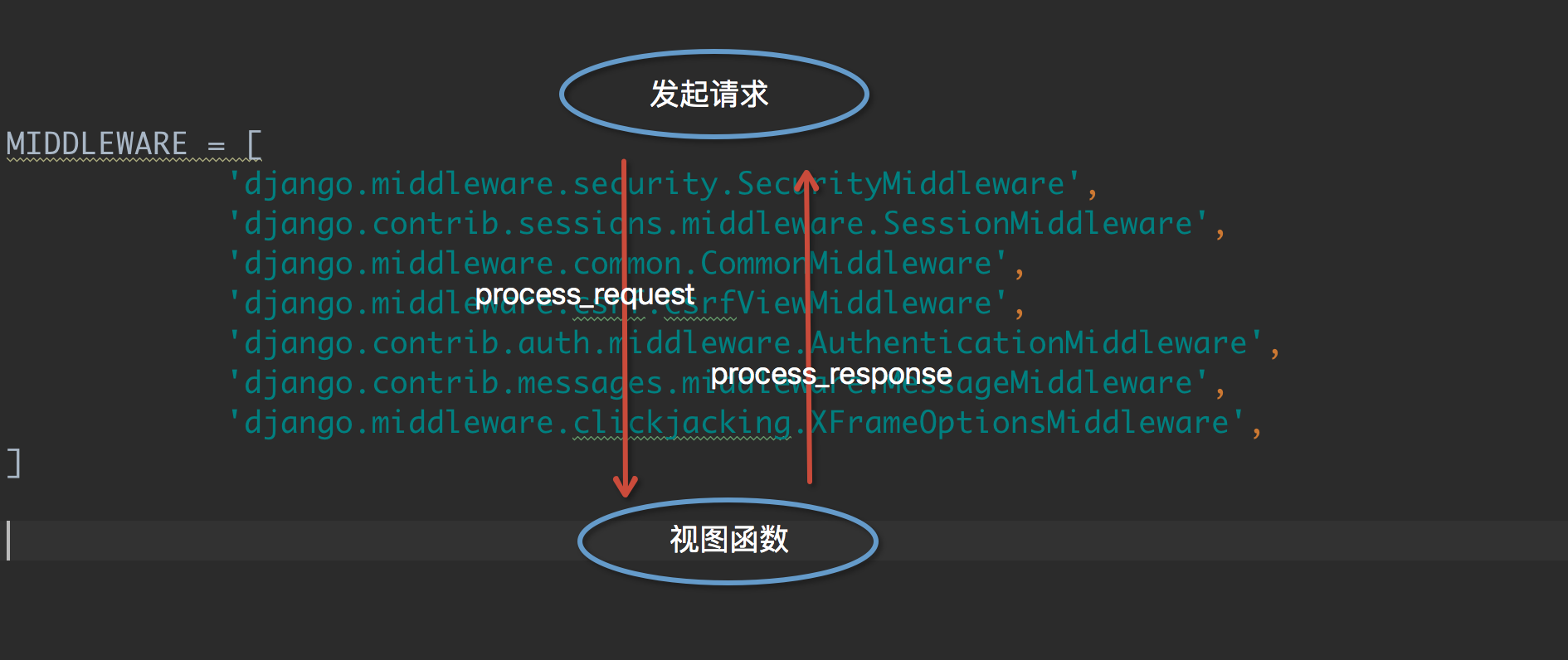 - c.返回值是 view_func(request),Django 将不执行后续视图函数之前执行的方法,提前执行视图函数,然后再倒序执行视图函数之后执行的方法。