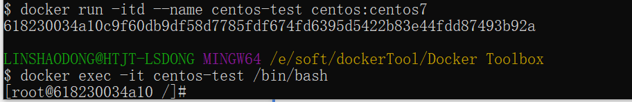 $ docker run -itd --name centos-test centos:centos7