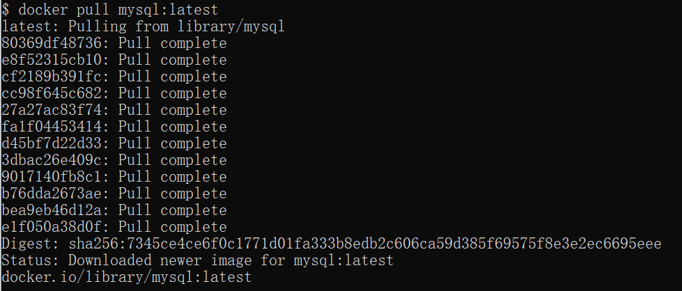 $ docker pull mysql:latest