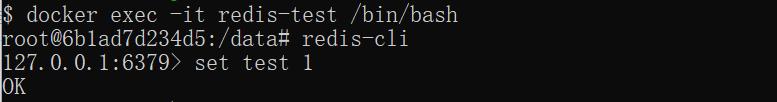 $ docker exec -it redis-test /bin/bash