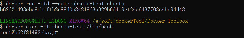 $ docker run -itd --name ubuntu-test ubuntu