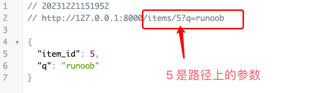 以下实例我们定义了一个带有路径参数 item_id 和查询参数 q 的路由。