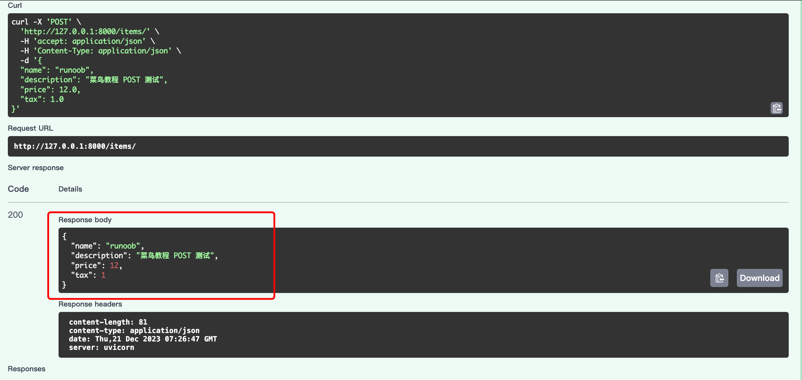 接下来我们创建了一个 /items/ 路由,使用 @app.post 装饰器表示这是一个处理 POST 请求的路由。