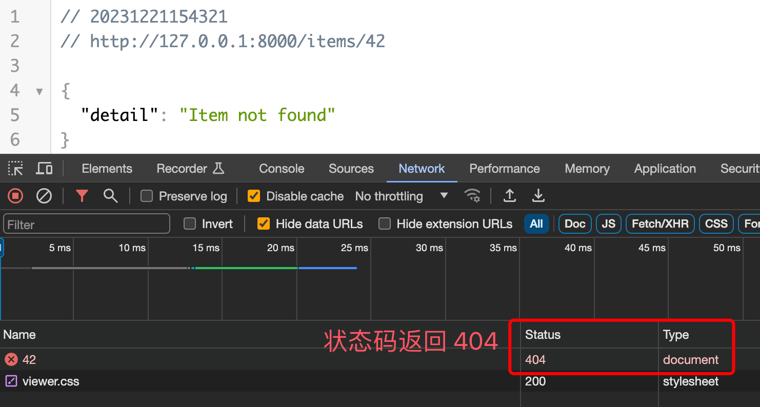 以下实例在 item_id 为 42 会返回 404 状态码: