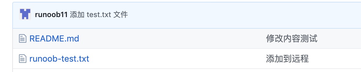 $ touch runoob-test.txt # 添加文件 $ git add runoob-test.txt $ git commit -m "添加到远程" master 69e702d] 添加到远程 1 file changed, 0 insertions(+), 0 deletions(-) create mode 100644 runoob-test.txt $ git push origin master # 推送到 Github