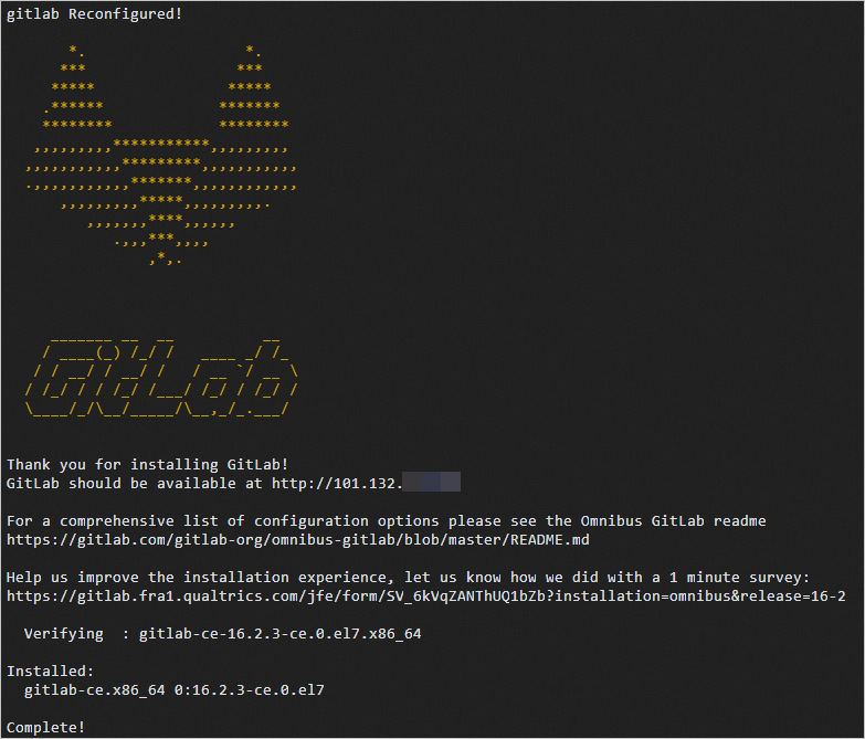 当出现类似如下回显信息,表示 GitLab 已经安装成功。