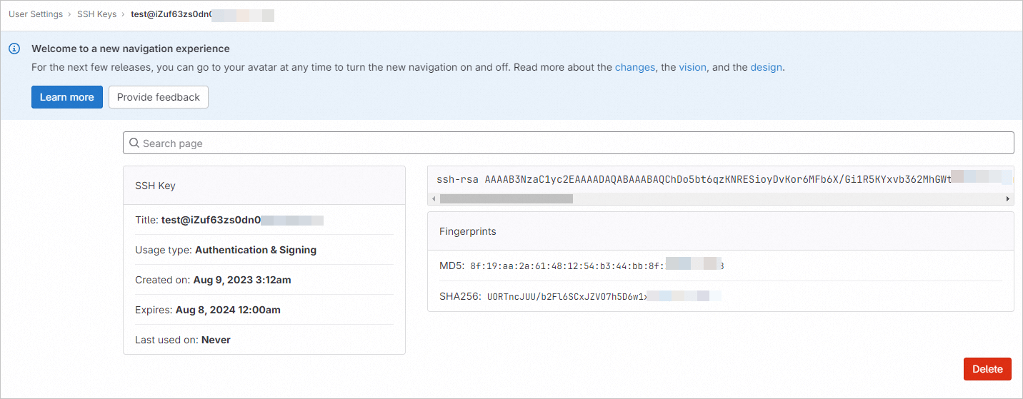 点击 Add key,SSH Key 添加完成后,如下图所示: