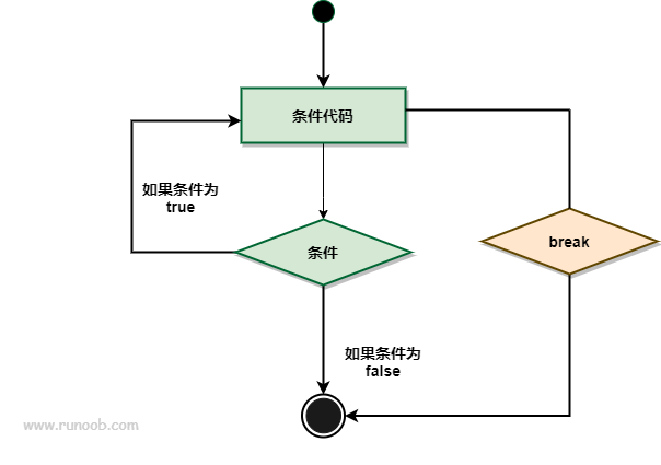 break 语句流程图如下: