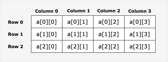 多维数组可通过大括号来初始值。以下实例为一个 3 行 4 列的二维数组: