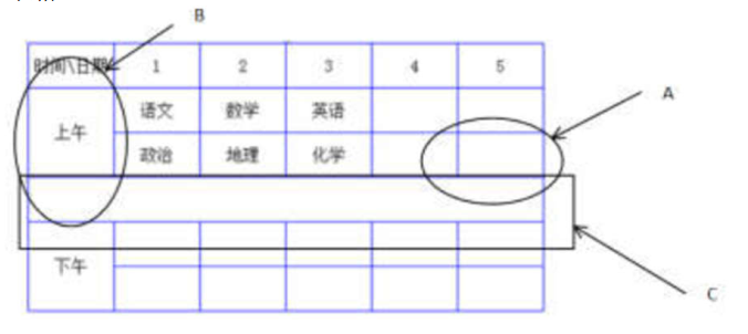 C 是合并左右单元格。合并后的 B 种单元格算到第二行第一个单元格中,C 种单元格算到第四行第一个单元格中(按上表