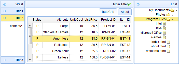 jEasyUI 创建复杂布局