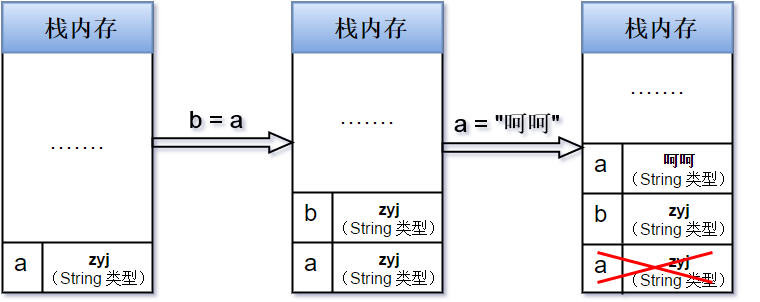 图解如下:栈内存中包括了变量的标识符和变量的值。