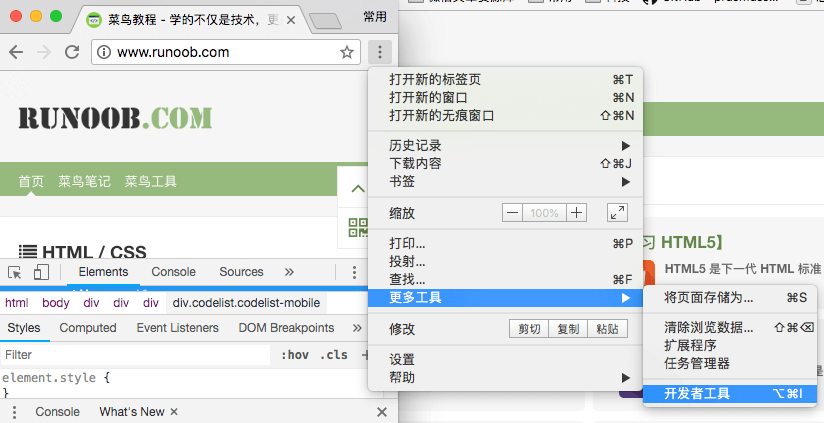 - 在工具中选择开发者工具。
