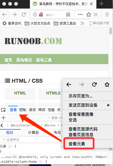 - 右击鼠标,选择 "查看元素"。