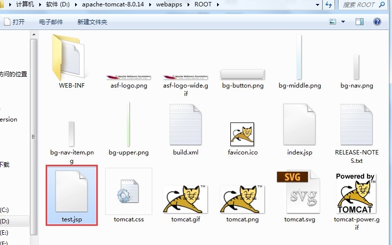 首先在D:\apache-tomcat-8.0.14\webapps\ROOT目录中新建一个jsp文件: