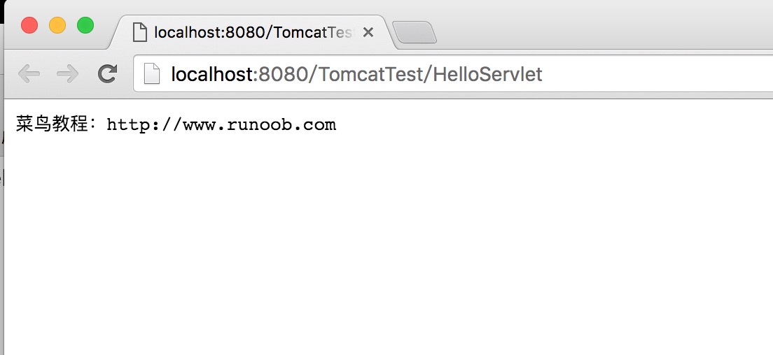 接着重启 Tomcat,浏览器访问 http://localhost:8080/TomcatTest/HelloServlet:
