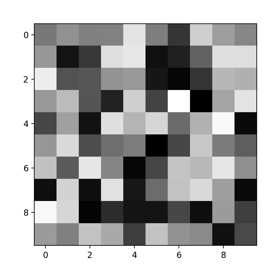以上实例中我们生成了一个 10x10 的随机数组,并使用 imshow() 函数将其显示为一张灰度图像。