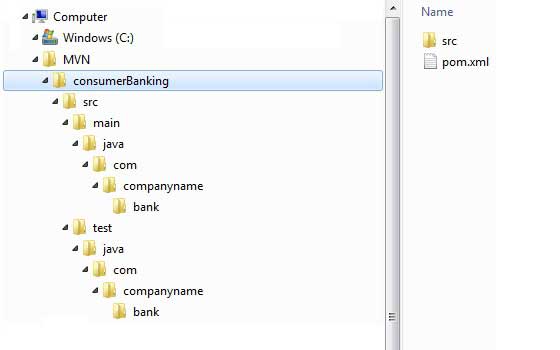 | src/main/java contains | java 代码文件在包结构下(com/companyName/bank)。 |