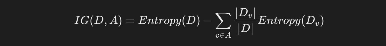 用于分类问题,衡量选择某一特征后数据集的纯度提升。计算公式为: