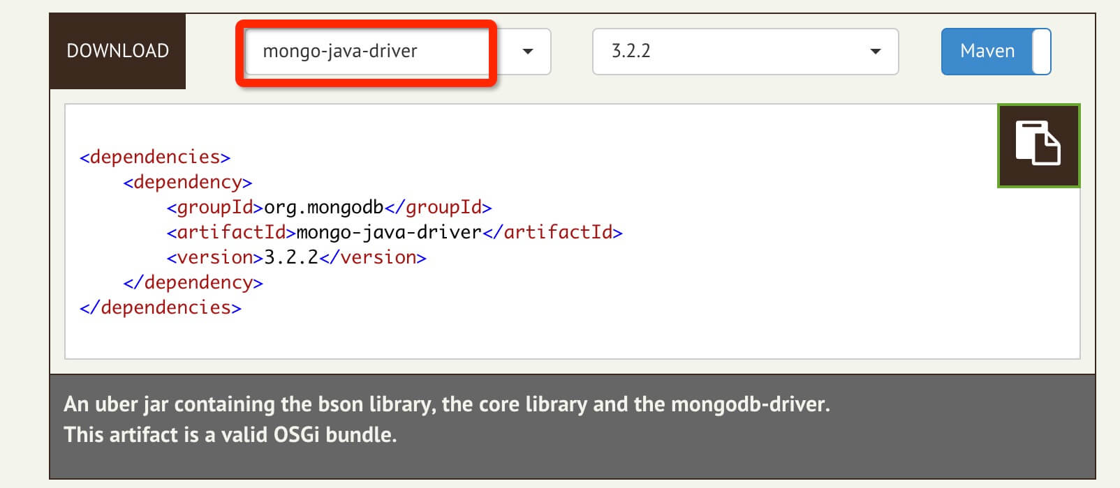 - 国内 mongodb-driver jar 下载地址:http://central.maven.org/maven2/org/mongodb/mongo-java-driver/