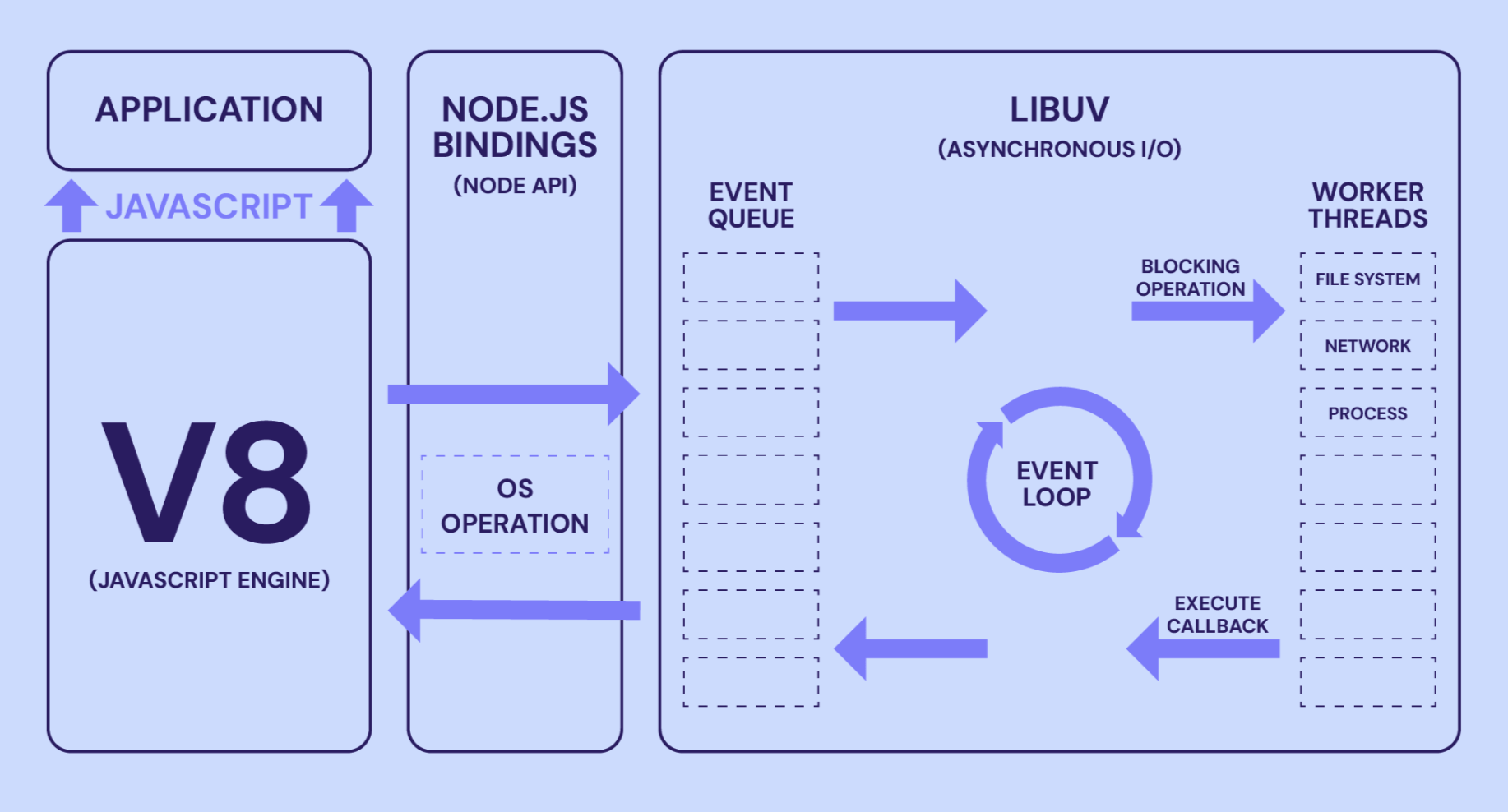 Node.js 的架构可以分为以下几个主要层次: