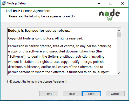 步骤 1 : 双击下载的安装包 Node.exe ,将出现如下界面 :