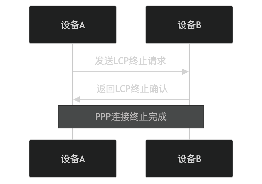 - 设备 A 和设备 B 通过 LCP 终止连接。