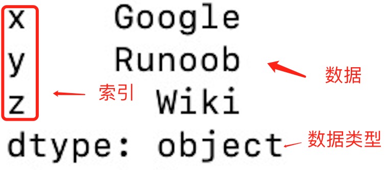 myvar = pd.Series(a, index = ["x", "y", "z"])