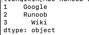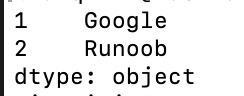myvar = pd.Series(sites, index = [1, 2], name="RUNOOB-Series-TEST" )