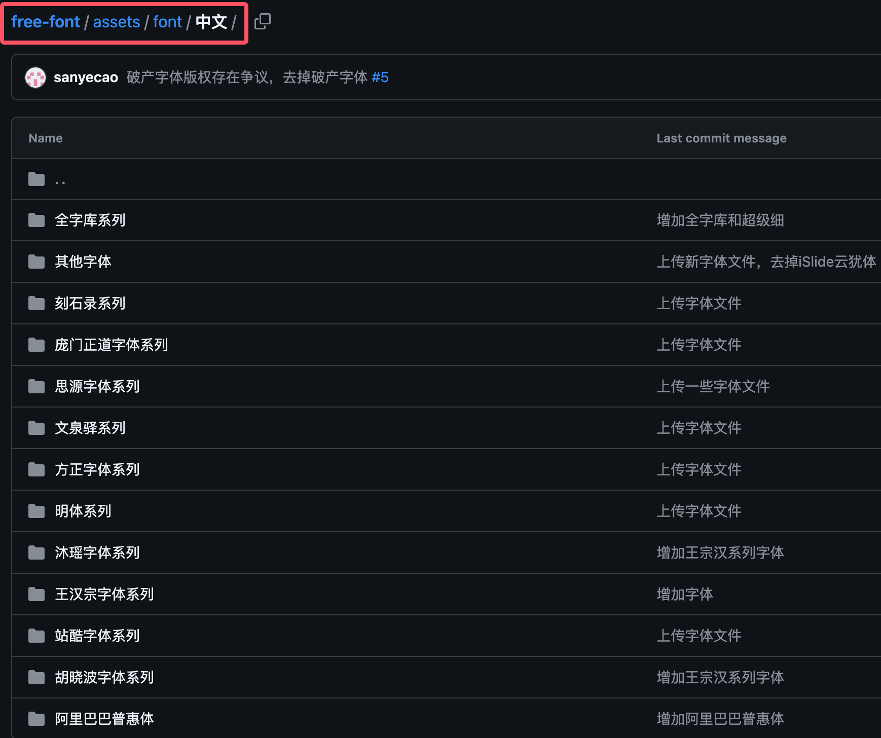 开源的中文字体库下载:https://github.com/wordshub/free-font。