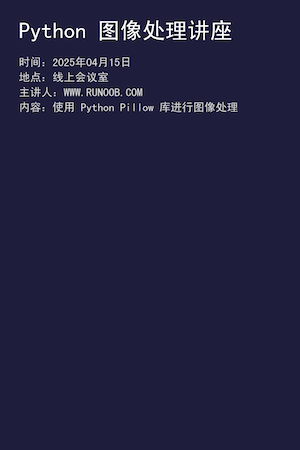 在图像上添加文字是图像处理中常见的需求,比如为图片添加水印、创建海报等。Pillow 提供了 ImageDraw 模块来实现这一功能。