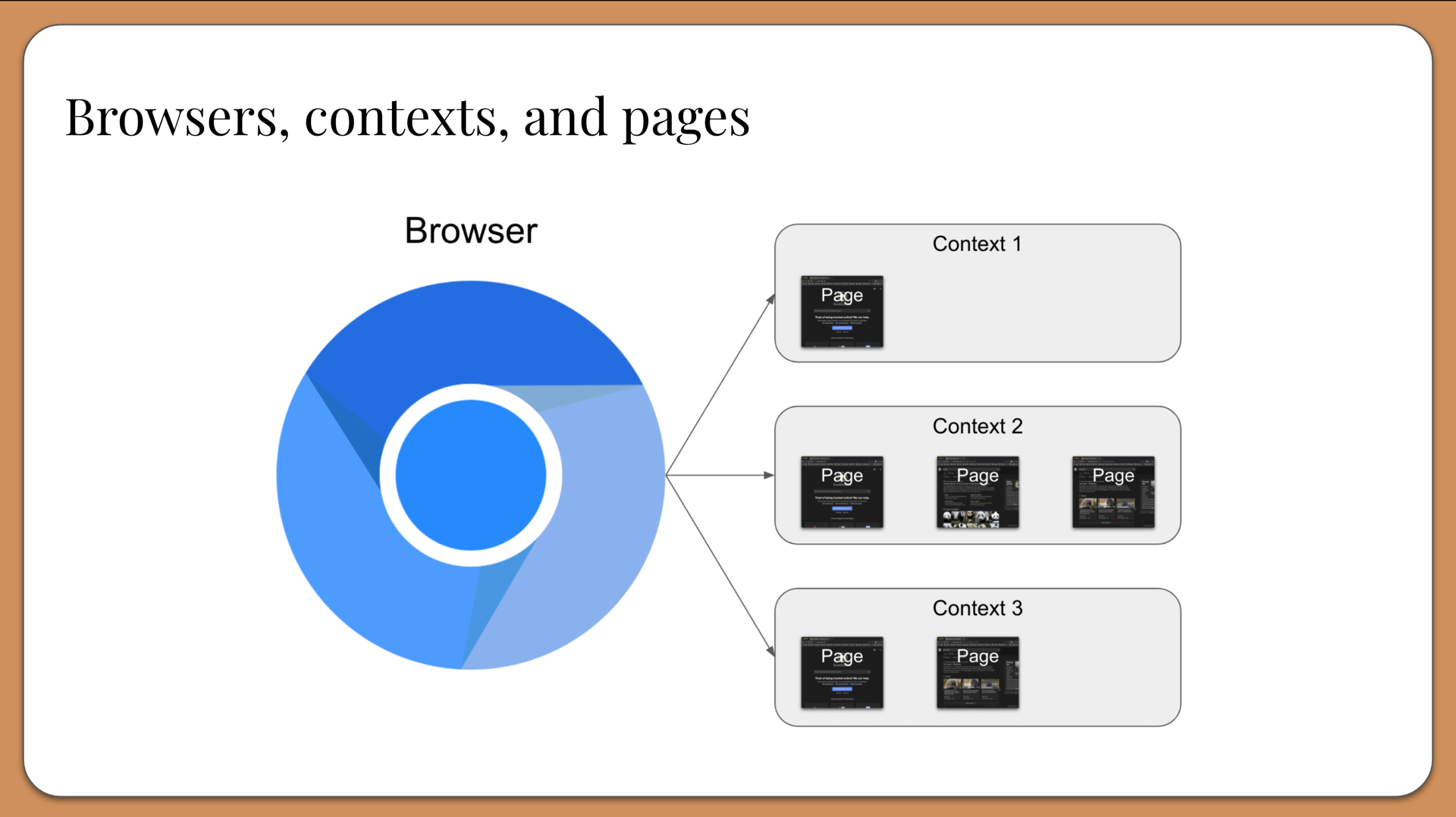 Page是你进行实际操作的地方。它代表了浏览器上下文中的一个标签页或窗口。所有的操作,如点击、输入、导航、截图等,都是在Page对象上执行的。