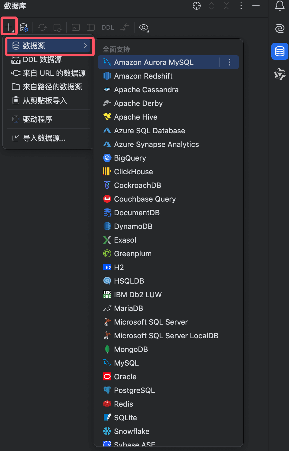 PyCharm 提供了强大的数据库管理工具,支持主流的关系型数据库(MySQL、PostgreSQL、Oracle 等)以及 NoSQL(MongoDB)。