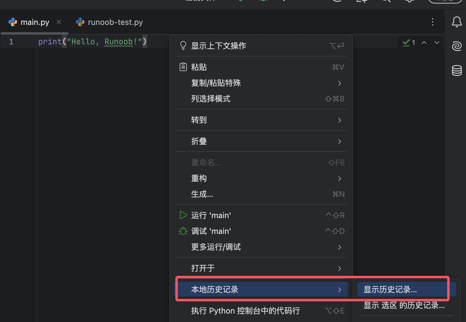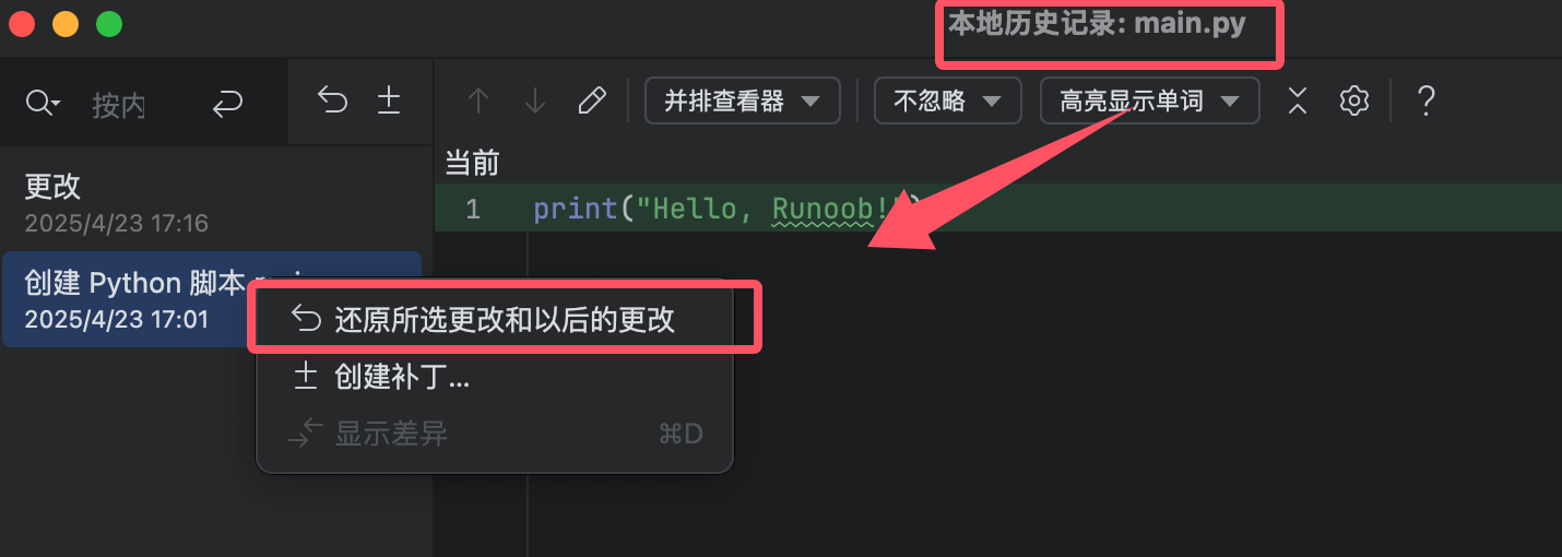右键文件 → 本地历史 → 显示历史(Local History → Show History)