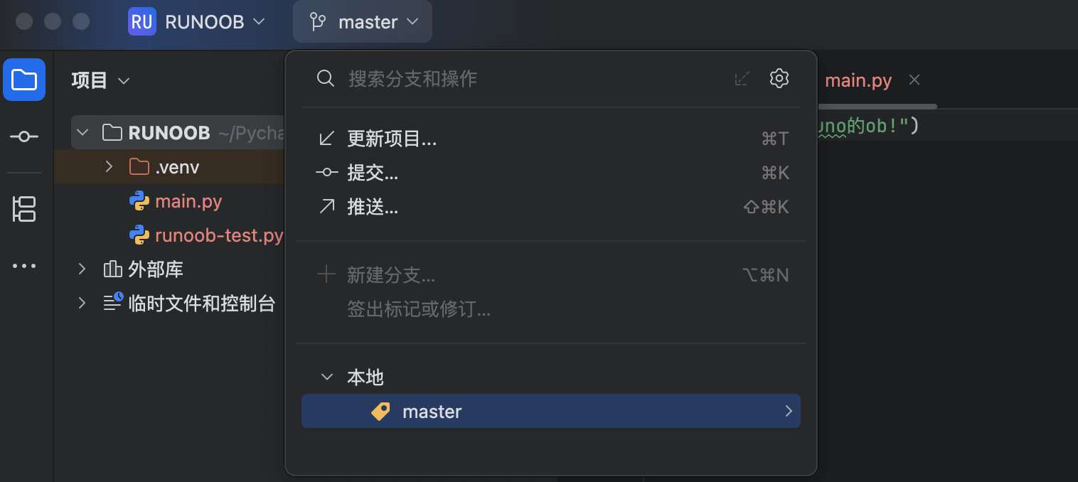 之后项目上的版本控制按钮就会变成 master(主分支):